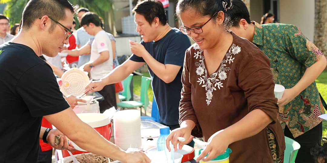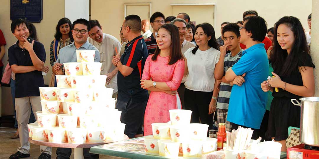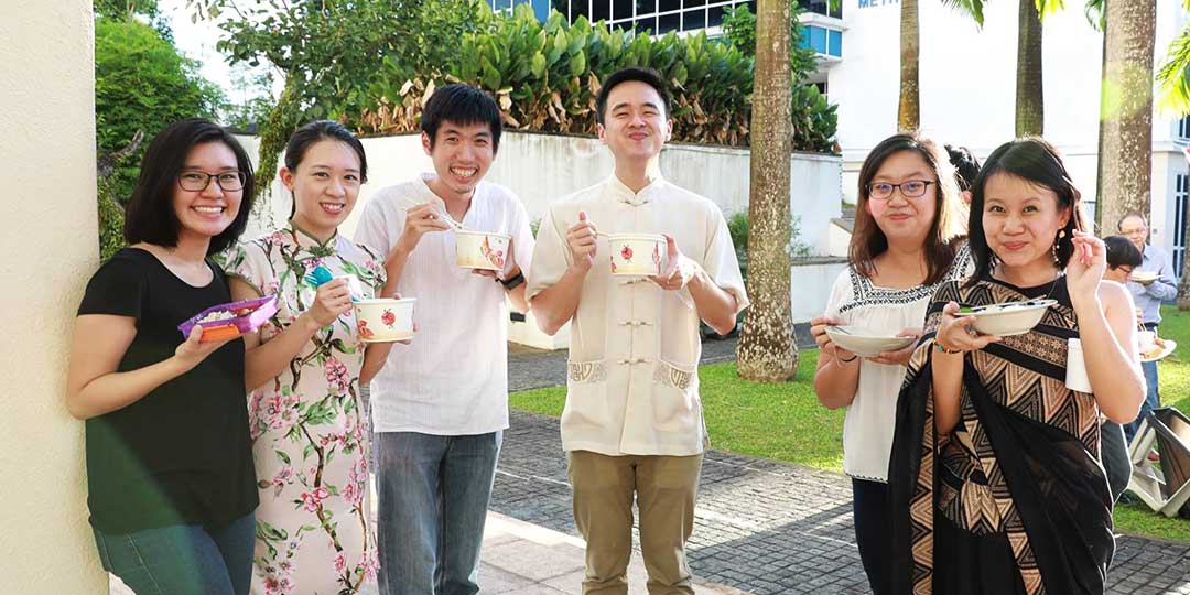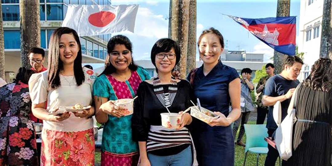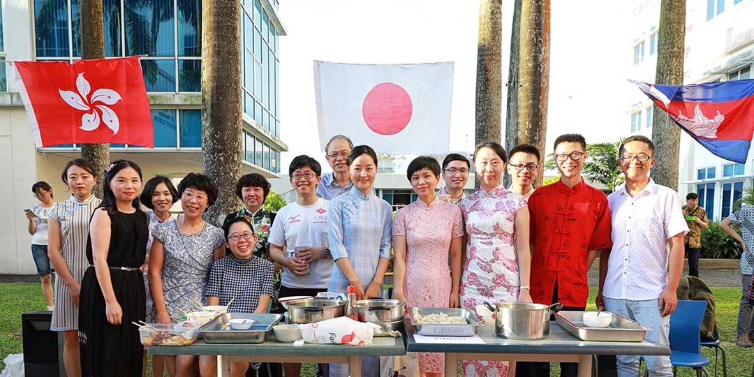 飨宴在校长致词和谢饭后正式开始。一些国家代表,如越南和缅甸,联合呈现反映他们共同文化遗产的佳肴。其他代表则推出他们独一无二的美食,如印度的香脆酥炸腰果,新加坡的芋头饭与焖猪肠,和楚示格博士的意大利菠菜千层面。值得一提的还有新加坡经典的彩虹面包夹雪糕,马来西亚的“淥淥”(花生酱火锅),还有中国的酒酿丸子。