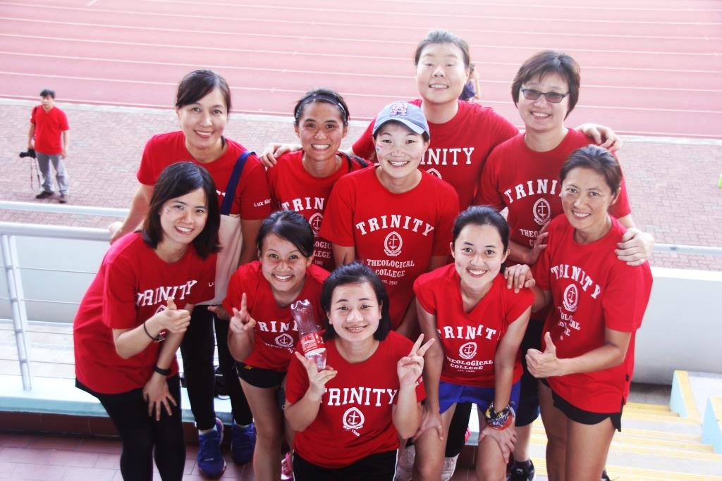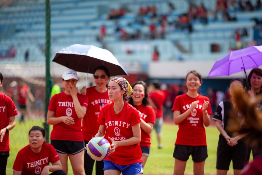 On 1st March 2019, the bi-annual Inter-College Sports Day held at Choa Chu Kang stadium kicked off with great zeal and the deafening cheers coming from the various seminaries contributing to the lively atmosphere. Representatives from Baptist Theological Seminary (BTS), Discipleship Training Centre (DTC), East Asia School of Theology (EAST), Singapore Bible College (SBC) and Trinity Theological College (TTC), participated in various sports such as men’s soccer, men’s captain’s ball and women’s captain’s ball. An 8x50m relay roused the crowd to their feet as both faculty and students ran towards the finishing line in their respective races. The event also featured other recreational games like kin-ball and a non-competitive walk around the track to facilitate interaction between colleges. The ice cream and fruits ensured a sweet and fun-filled, or rather stomach-filled, afternoon for both the sporty and non-sporty alike. Esther Peh, a second-year MDiv student, recounted that it was “an afternoon where all that we’ve learnt in textbooks about brotherly love, grace, kindness, and the unity of Christ’s Church came alive on the courts.” Although TTC walked away victorious, having emerged women’s captain’s ball team champions, men’s captain’s ball runners-up and retained their crown for the second year running in men’s soccer, participants from all five seminaries were winners because of the siblinghood we share in Christ and in our common purpose to equip and be equipped for God’s service. Aptly so, the sports day concluded with a group photo in the shape of a cross on the field symbolising that while we are from different colleges, we are part of a larger community; the body of Christ. The passing of baton as event organiser from EAST meant that TTC would have to build upon the success of this year’s sports day.